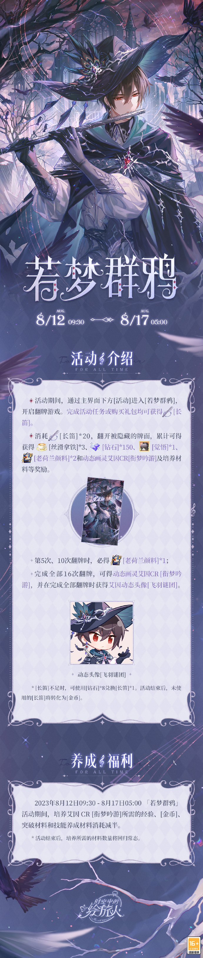 时空中的绘旅人新活动若梦群鸦在8.12号后正式开启,大家知道这个新活动应该怎么玩嘛?下面为大家带来的具体内容,感兴趣的玩家们千万不要错过哦!