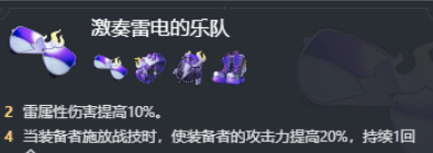 推荐激奏雷电的乐队4件套 (雷属性套),或 流星追迹的怪盗4件套 (击破特攻套)
