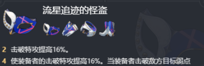 「流星追迹的怪盗4件套」可提提高卡芙卡击破能力,且成功击破弱点后,可以恢复能量,给自己充电。