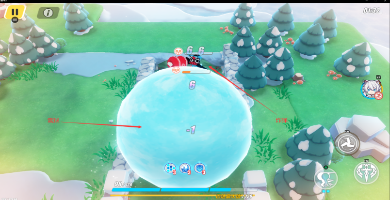 其他提示:在雪球中不要点击「普通攻击」按钮,否则可能会从雪球中挣脱。