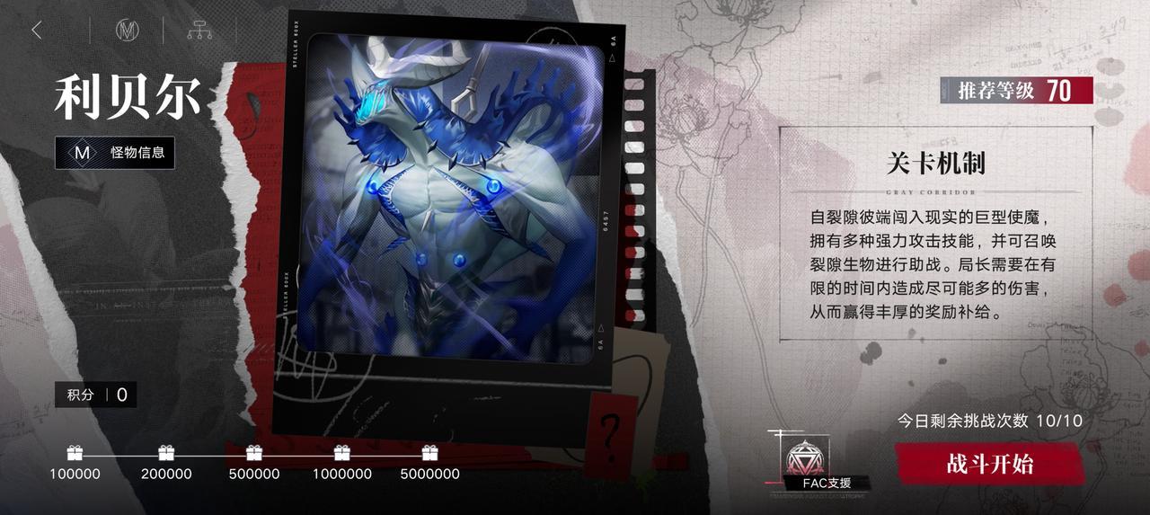 1.8月12日05:00后,局长可进入枯萎之门迎战裂隙使魔-利贝尔,达到指定积分可获得积分奖励;