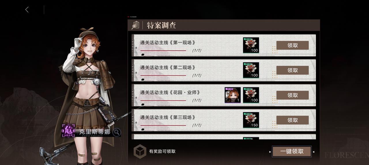 奖励介绍:完成任务可获得全新高危级禁闭者【克里斯蒂娜】,限定勋章【新手探员】、【特派探员】、【传奇探员】,限定称号【代理探长】,限定头像框【繁花颂葬】,活动代币【枯荣之花】及异方晶奖励。