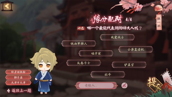 ※寻缘之梦:在活动中设置个人「寻缘」标签后,界面将出现标签相似的可结缘对象,大人可主动发起匿名聊天。活动期间,可随时编辑自身标签,结识更多缘分。