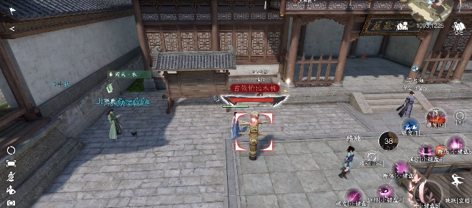3、各大流派的专属场景中也会有木桩,木桩在流派任务接取人附近。