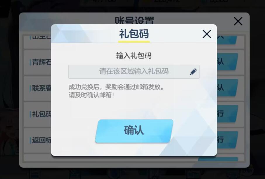 点击输入礼包码即可