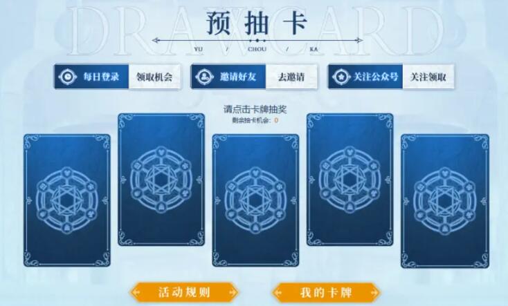 ② 完成关注公众号,可获得3次抽卡机会;