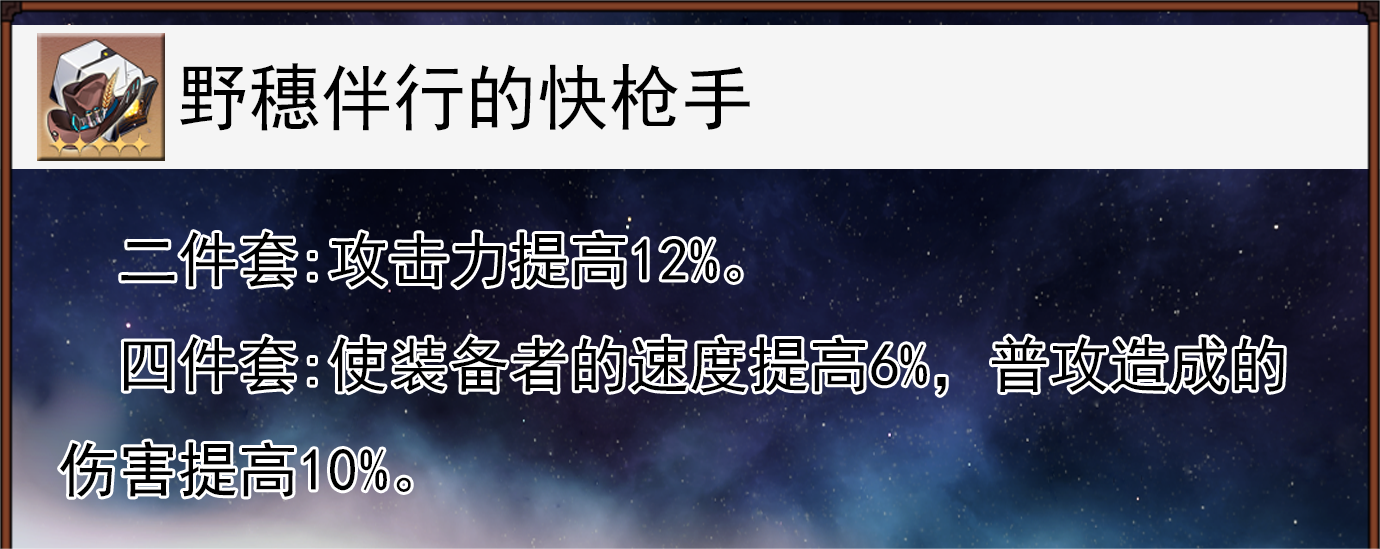 四件套:使装备者的速度提高6%,。普攻造成的伤害提高10%