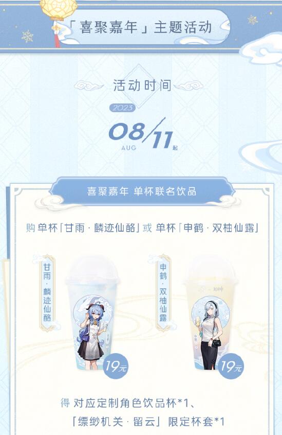 喜茶和原神第二期联动即将开启,这次的主题角色是甘雨和申鹤齐聚阿喜茶馆,下面F4手游网小编为大家带来原神喜茶联动时间,感兴趣的小伙伴一起了解一下吧。