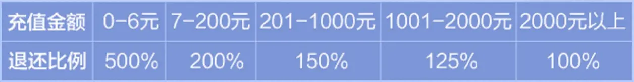 以下为原充值返还规则,部分追加规则(不影响原规则充值返利福利)请以最新版本为准;