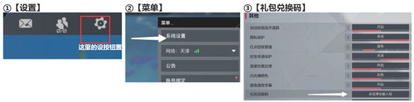 可以通过游戏内点击右上角【设置】-【菜单】-【礼包兑换码】输入兑换。