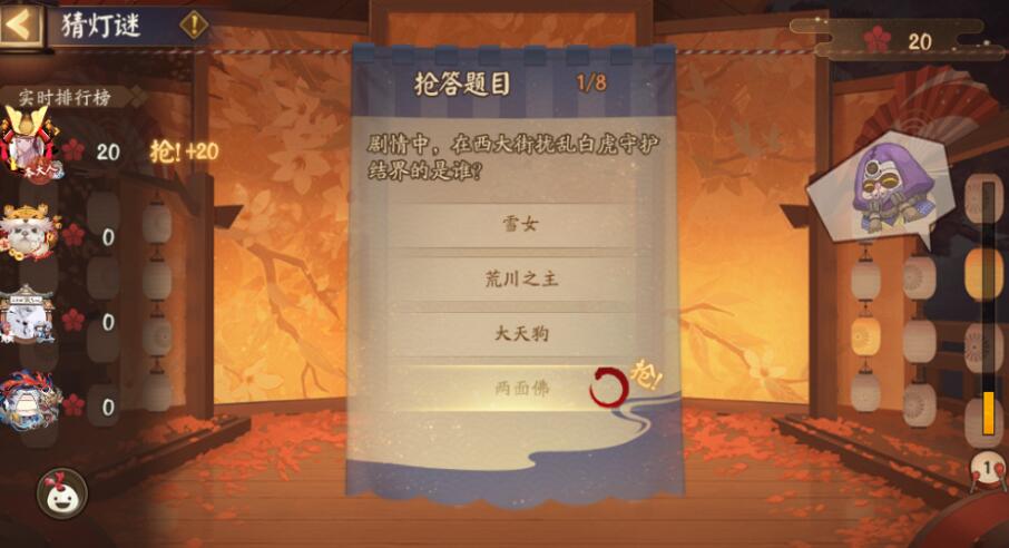 通过抢答阴阳师相关的题目,根据最终排名获得不同的物资,第一名可以获得25物资,后续排名15、10、5依此类推。