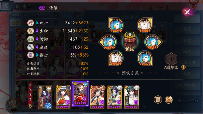 二速清姬,火灵/招财,攻攻暴,满暴堆输出,155+