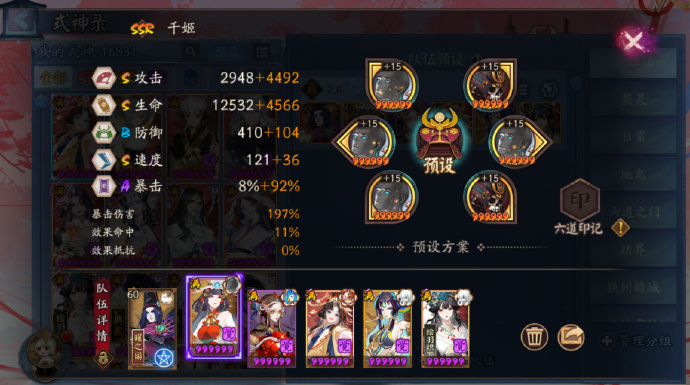 一速千姬,涂荒,攻攻暴,满暴堆输出,155+