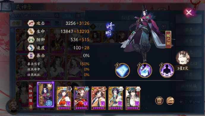 三速晴明,星灭,契灵带镇墓兽(3星3灭最好),优先级灭>星,我没3灭的,所以我带的3星2灭。