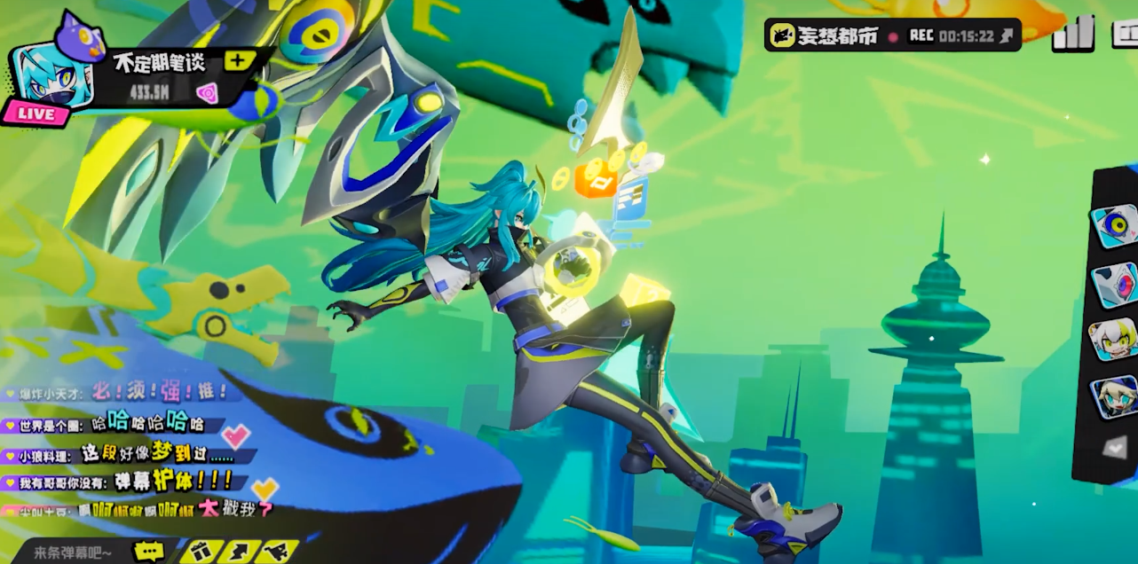 以高科技、高信息化的妄之都为主要场景,我们利用怪诞、趣味风格,打造了主播专用虚拟成像直播房间的场景设定,在这里,主播可以将脑内所想幻化成实体,进行无限想象和创作!除此之外,充满了夏日色彩氛围的直播间内,可爱化、个性化的直播弹幕欢乐弹射,同时,我们在场景中融入形态各样的emoji小表情,以及五彩缤纷的背景装饰,让直播间整体更加动感。