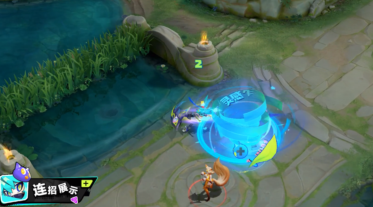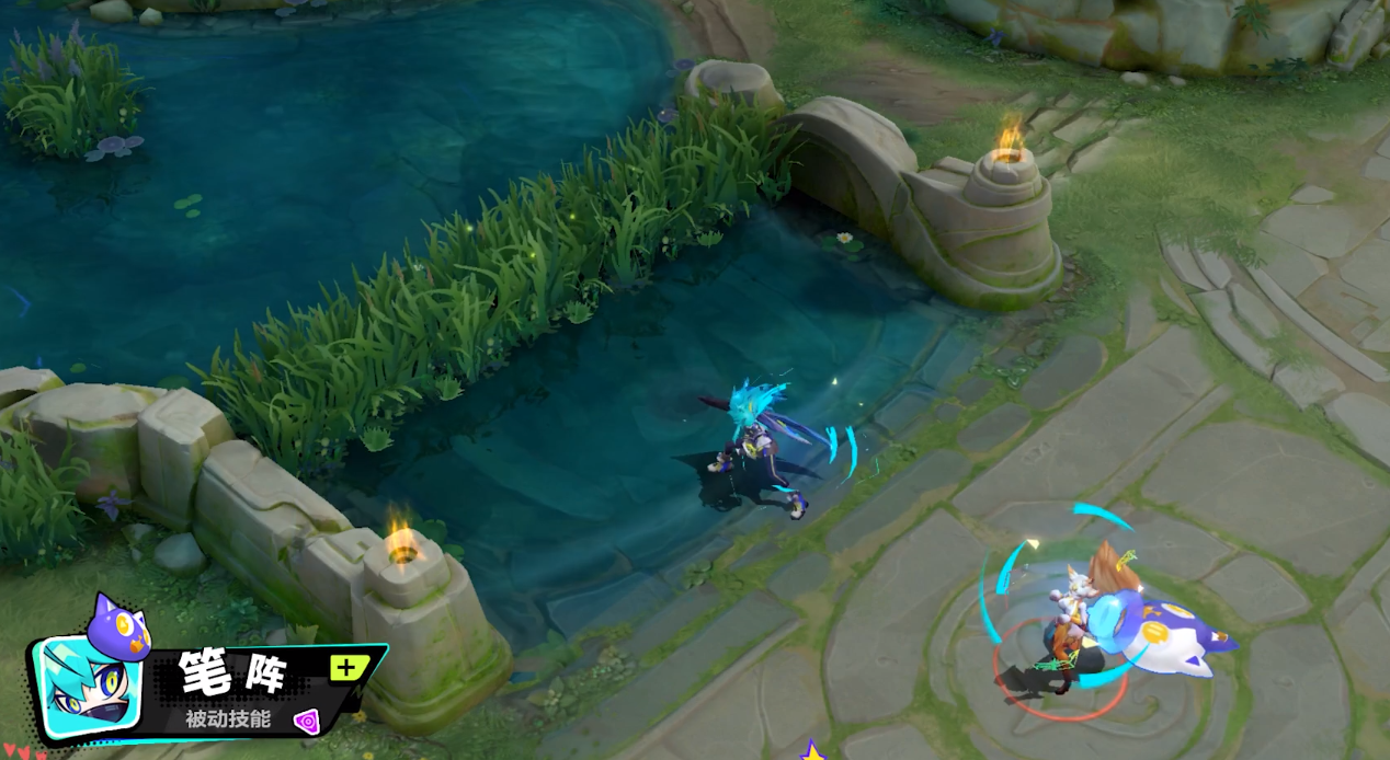 二技能:婉儿召唤出打字机和灵感小人,小人执笔奋力书写,形成一股蓝色的文字龙卷风,怪诞小人装饰其中