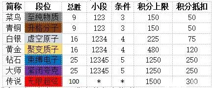 排位赛-段位说明: