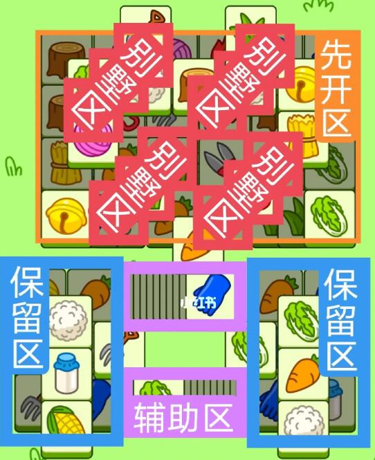3.必要时可以用紫色盲盒区辅助消除,盲盒区后期不用留太多,留几张备用即可。