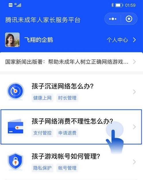 一、打开微信,搜索腾讯未成年人家长服务平台公众号,选择孩子网络消费不理性怎么办选项进行验证。