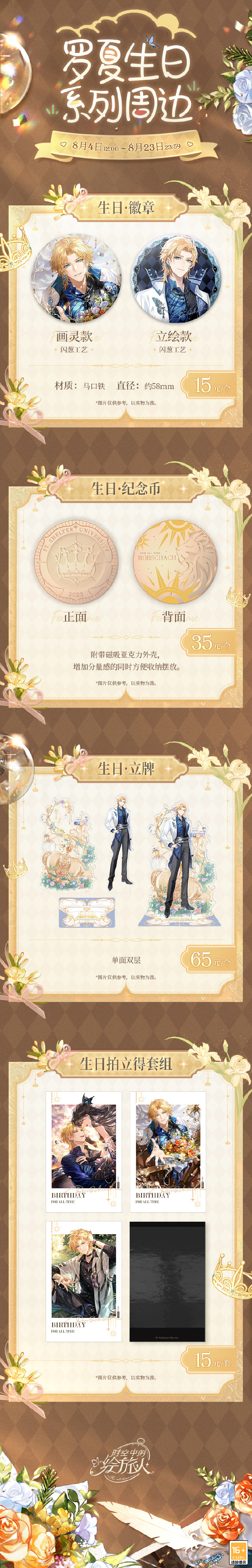 ► 罗夏2023生日限定单品:生日徽章、生日纪念币、生日双层立牌、生日拍立得套组