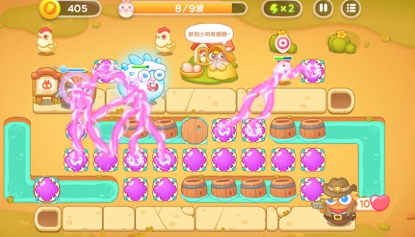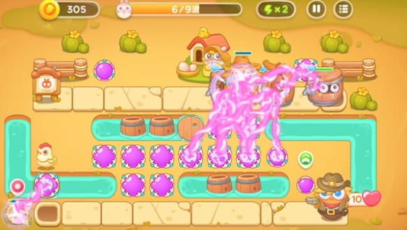 5、水路上也摆放多个魔法球装置,准备提前迎来最后一波的兔兔攻击。