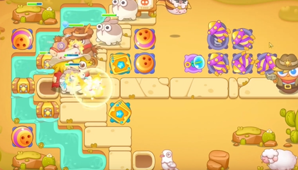 在绿色的兔子出来之后就要将其来锁定攻击,逐渐在右边增加上导弹炮的数量。