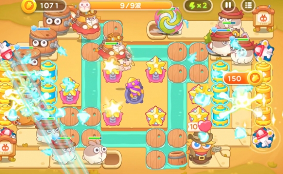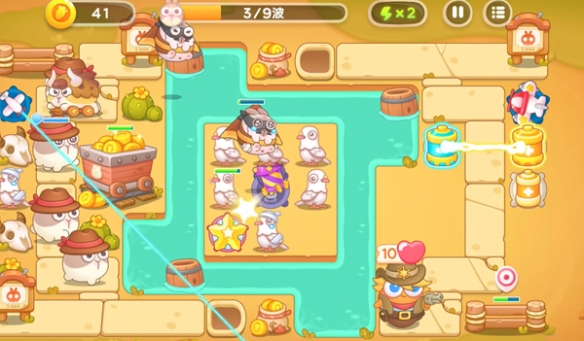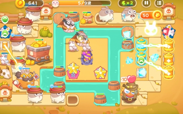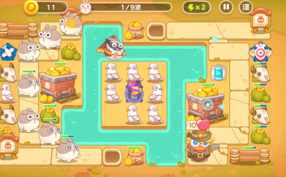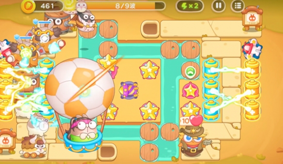 5、差不多在第八波的情况下,在左下角会冒出一个“!”信号,随后缓慢出现一个气球兔兔,在这种情况下玩家得滑动自己的小手来点击气球并击落它。