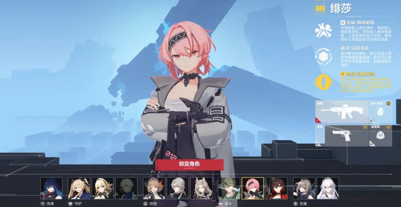 4、绯莎的技能有探测有续航,是一个非常适合新手玩家选择的职业,实战中可以更容易的追击残血敌人并将其击杀。