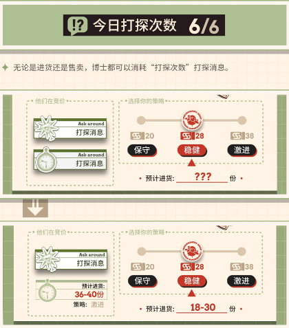 无论是进货还是售卖,博士都可以消耗“打探次数”打探消息。