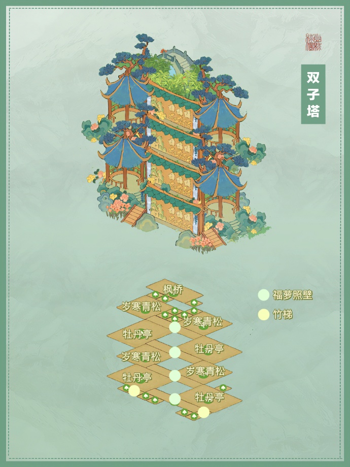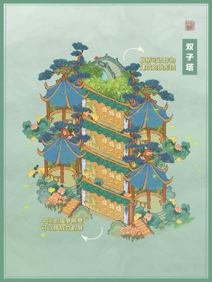 上述就是F4手游网小编给大家介绍的桃源深处有人家双子塔如何布局 桃源深处有人家双子塔布局攻略,希望对你有所帮助。