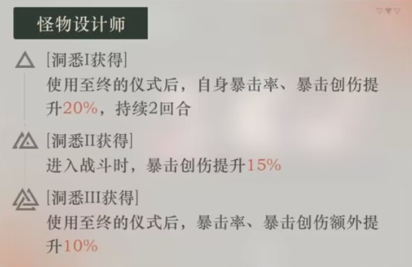 至终仪式“粉浆电影”是一个倍率只有250%的对群体攻击,同时本次攻击暴击率提升20%。至终仪式的倍率同样较低,但是相对的有20%的暴击率提升做了些平衡。
