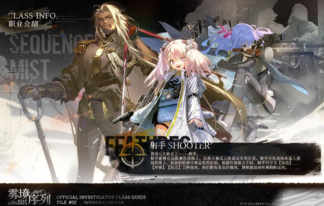 根据作战能力不同,射手可分为【突击】【冲锋】【狙击】三种类别,他们都有各自的强项,请根据战场环境斟酌运用。