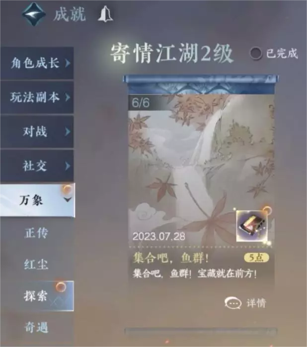 开启六次悬浮宝箱后,可以在收藏—成就里的万象-探索中领取趣味技能:群鱼簇。