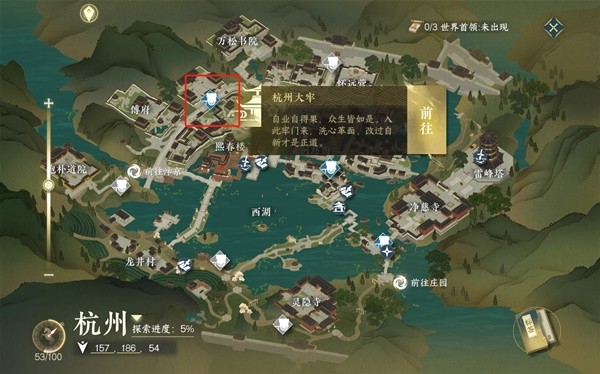 杭州(1339,1011)位置找NPC郑七对话进入大大牢,大概是这个位置,直接进去