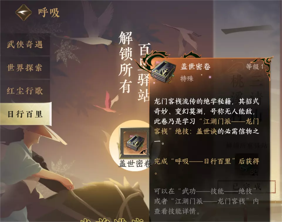2.完成呼吸--日行千里即可获得【盖世密卷】