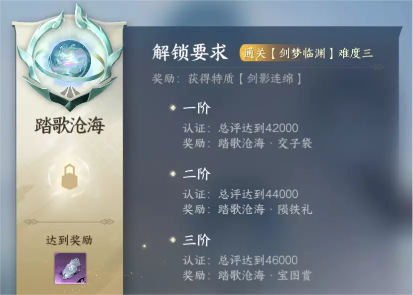 1.成名赏达到踏歌沧海,需要通关【剑梦临渊】难度三